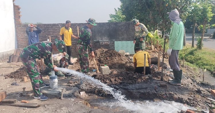 Salah satu capaian signifikan tampak pada program TNI Manunggal Air Bersih (TMAB) yang berlokasi di Dusun Sumbertanggul, Desa Sumbertanggul, Kecamatan Mojosari, Kabupaten Mojokerto, di mana air dari sumur bor telah berhasil dipompa keluar dan kini tengah dilakukan proses pembuatan pondasi pelindung. Pantauan di lapangan, Jumat (17/10/2025), memperlihatkan suasana penuh semangat kebersamaan antara personel Satgas TMMD dan warga setempat yang bekerja bergotong royong menyelesaikan tahapan pembangunan fasilitas air bersih tersebut.