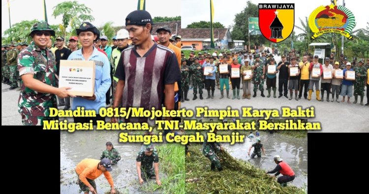 Mojokerto - Wujud nyata kepedulian TNI terhadap keselamatan dan kesejahteraan masyarakat kembali ditunjukkan Kodim 0815/Mojokerto melalui kegiatan Karya Bakti Mitigasi Bencana Alam di Dusun Kwedenkulon, Desa Kwedenkembar, Kecamatan Mojoanyar, Kabupaten Mojokerto, Jawa Timur, Ahad (18/01/2026). Kegiatan ini dipimpin langsung Dandim 0815/Mojokerto Letkol Inf Abi Swanjoyo, S.Hub.Int., bersama jajaran TNI, Polri, pemerintah daerah, serta masyarakat setempat.