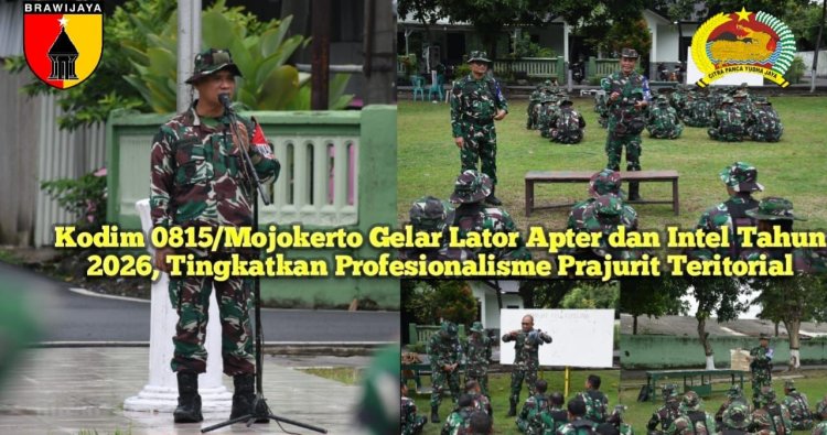 Mojokerto - Dalam rangka meningkatkan kemampuan dan profesionalisme prajurit teritorial, Kodim 0815/Mojokerto melaksanakan kegiatan Latihan Perorangan (Lator) Aparat Teritorial (Apter) dan Intel Tahun 2026 di Lapangan Cikaran Asrama Korem 082/CPYJ, Jalan Gajah Mada, Kota Mojokerto, Jawa Timur, Jumat (23/01/2026).