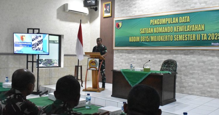Mojokerto - Kodim 0815/Mojokerto melaksanakan kegiatan Pengumpulan Data Satuan Komando Kewilayahan (Satkowil) Semester II Tahun Anggaran 2025, bertempat di Ruang Data Makodim 0815 Jalan Majapahit Nomor 01 Kota Mojokerto, Jawa Timur, Kamis (30/10/2025). Kegiatan ini diikuti oleh jajaran Babinsa dari seluruh Koramil di wilayah Kodim 0815/Mojokerto.