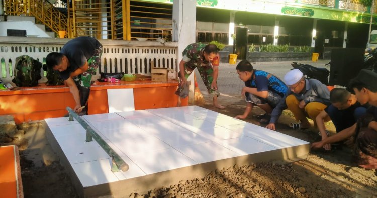Kegiatan yang berlangsung selama tiga hari, mulai Senin hingga Rabu (20–22 April 2026) ini melibatkan personel Koramil 0815/04 Puri bersama para santri. Dalam kegiatan tersebut, tampak anggota TNI bersama santri bekerja secara gotong royong, mulai dari pengolahan material, pengecoran hingga pemasangan sarana. Selain membangun fasilitas fisik, kegiatan ini juga menjadi sarana pembinaan mental, disiplin, dan semangat juang bagi para santri sebagai bekal dalam menghadapi seleksi menjadi prajurit TNI.
