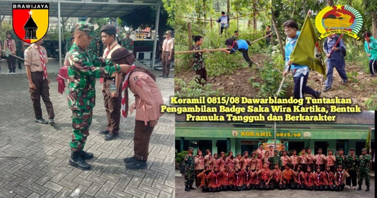 Mojokerto - Koramil 0815/08 Dawarblandog Kodim 0815/Mojokerto sukses melaksanakan rangkaian kegiatan Pengambilan Badge Saka Wira Kartika Pramuka yang berlangsung selama dua hari di Makoramil 0815/08 Dawarblandog dan sejumlah lokasi etape pengembaraan di wilayah Kecamatan Dawarblandog.