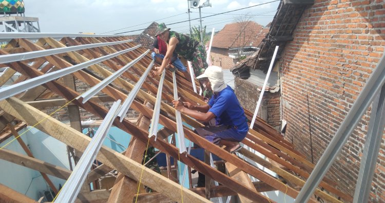 Tampak di lokasi, sejumlah personel Satgas TMMD bersama warga bergotong royong memasang rangka atap dan menyiapkan material baja ringan. Dengan penuh semangat kerja sama antara TNI dan masyarakat begitu terasa. Mereka bahu-membahu memastikan setiap tahapan pekerjaan berjalan sesuai rencana dan target waktu yang telah ditentukan.