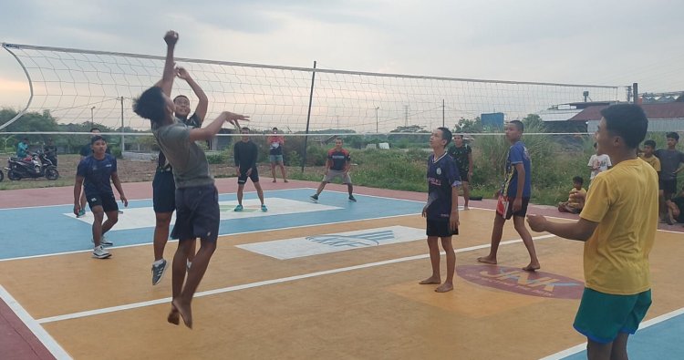 Kegiatan yang dikemas dalam pertandingan bola voli persahabatan ini menjadi ajang mempererat tali silaturahmi dan kebersamaan antara personel TNI dan masyarakat desa setempat. Di bawah sorotan matahari senja, kedua tim menampilkan permainan yang penuh semangat dan kekompakan.