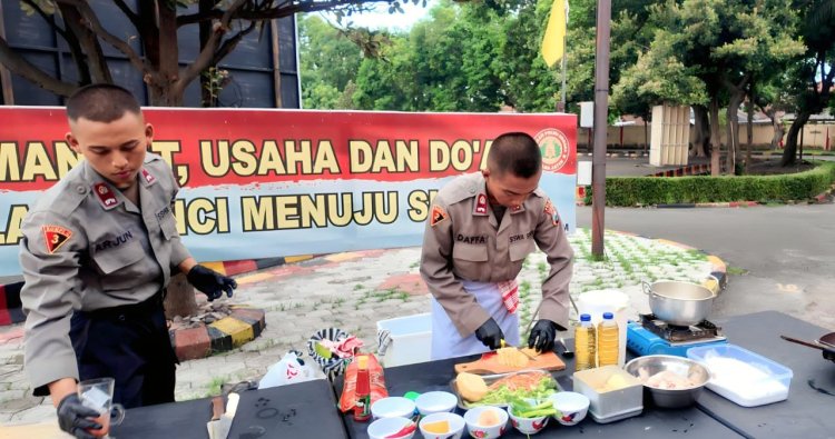 MOJOKERTO – Dua siswa Pendidikan Pembentukan Bintara (Diktukba) Polri T.A. 2025 SPN Polda Jatim dari jalur seleksi Bintara Kompetensi Khusus (Bakomsus) Tata Boga, tampil memukau memamerkan potensi kuliner mereka melalui sesi demo memasak.