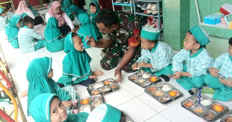 Dalam pelaksanaan di lapangan, para Babinsa terlihat aktif membantu guru dan pendamping dalam memastikan anak-anak menerima paket makan secara teratur, sekaligus membangun kedekatan dengan para siswa melalui edukasi ringan tentang pola makan sehat. Di beberapa lembaga PAUD dan TK, Babinsa juga membantu menyuapi anak-anak untuk memastikan seluruh siswa menikmati makanan dengan aman dan nyaman. Kegiatan berjalan aman, tertib, dan penuh keceriaan, menunjukkan komitmen TNI dalam mendukung tumbuh kembang generasi muda melalui pemenuhan gizi yang baik