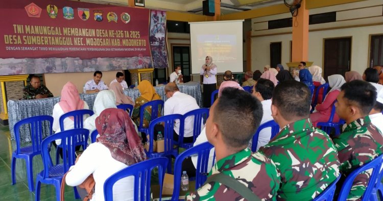 *Mojokerto* - Satuan Tugas (Satgas) TNI Manunggal Membangun Desa (TMMD) ke-126 Kodim 0815/Mojokerto kembali melanjutkan sasaran nonfisik dengan menggelar penyuluhan Pemberdayaan Masyarakat dan Desa penting bagi masyarakat. Kali ini, sosialisasi difokuskan pada Pelayanan Publik dan Administrasi Kependudukan di Desa Sumber Tanggul, Kecamatan Mojosari, Kabupaten Mojokerto, Jawa Timur, Rabu (15/10/2025) .